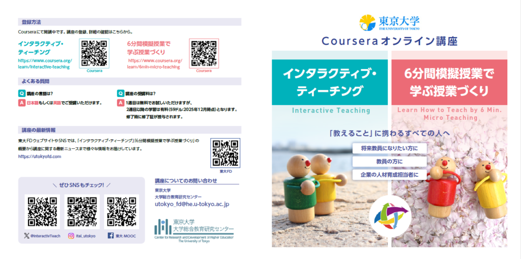 この度、Courseraで公開中のオンライン講座「インタラクティブ・ティーチング」および「6分間模擬授業で学ぶ授業づくり」のリーフレットを作成いたしました。